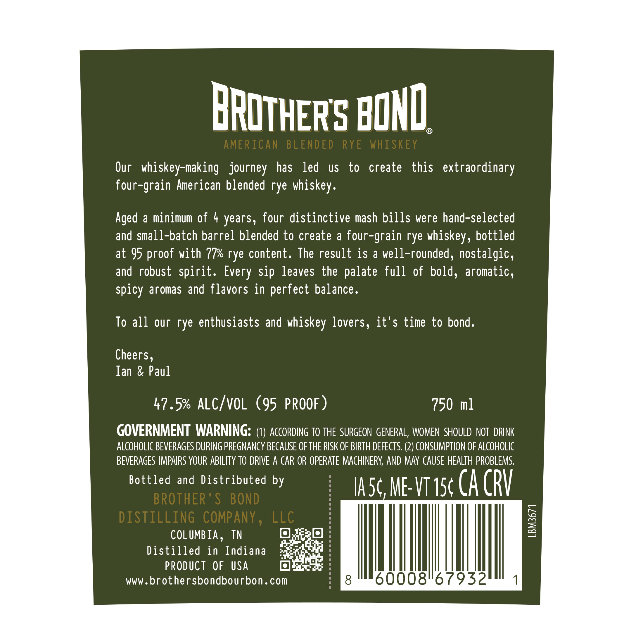 Brother’s Bond American Blended Rye Whiskey