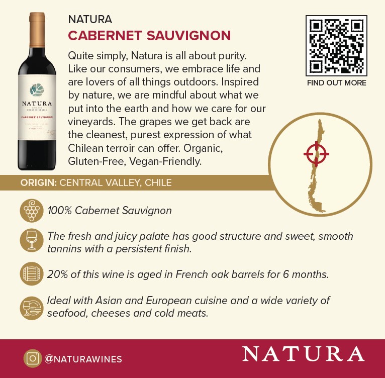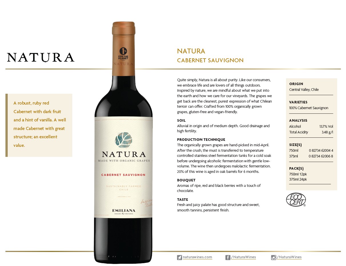 Quite simply, Natura is all about purity. Like our consumers, we embrace life and are lovers of all things outdoors. Inspired by nature, we are mindful about what we put into the earth and how we care for our vineyards.