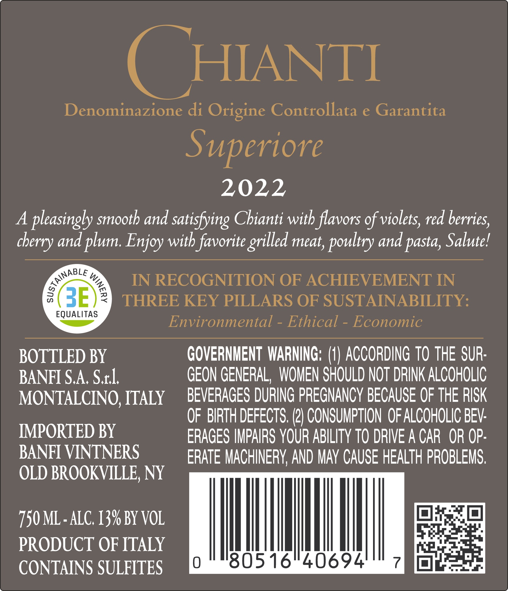 The “Superiore” designation signifies stricter government regulations requiring lower yields and great plant density in the vineyards, and slightly higher levels of alcohol and fruit extraction.