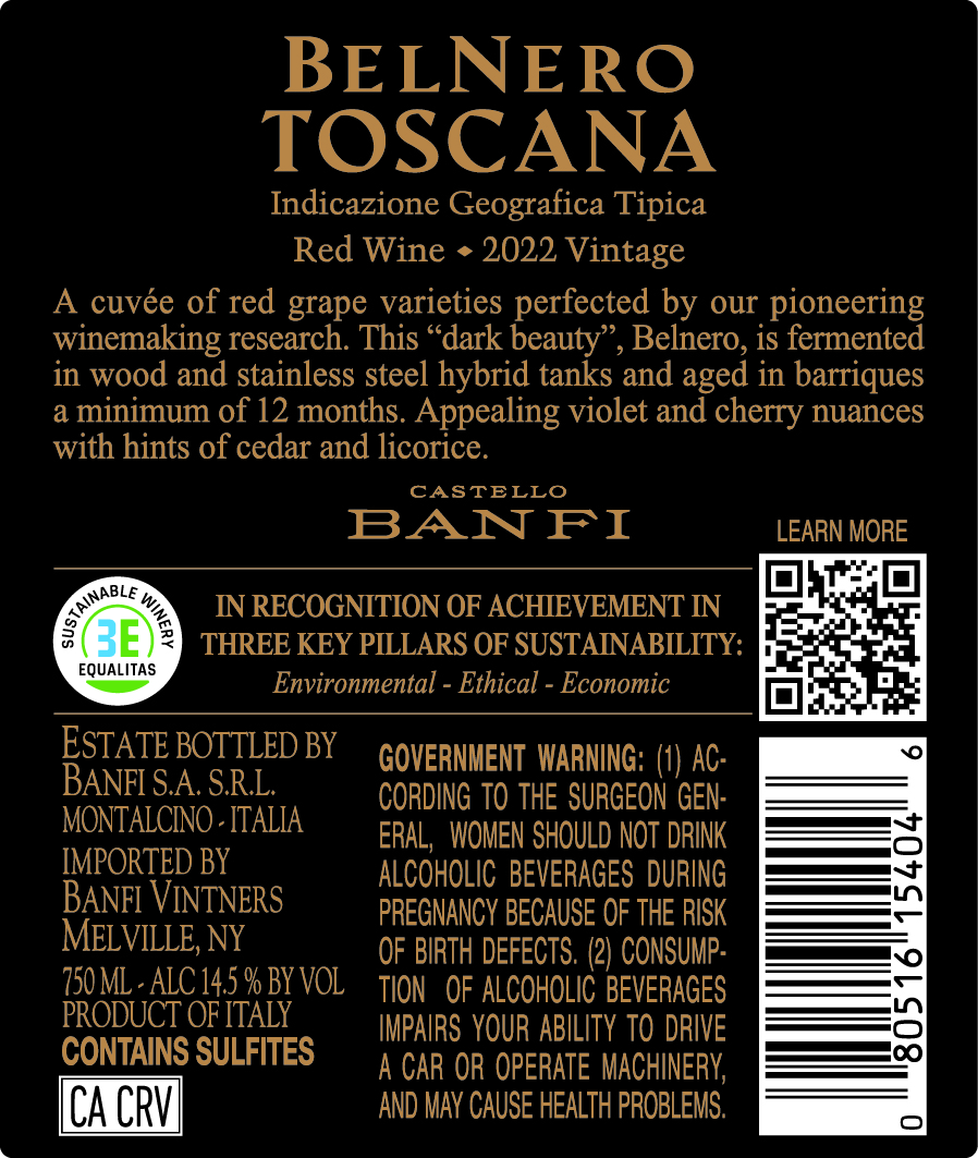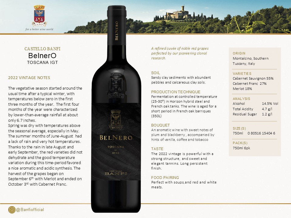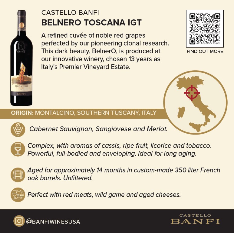 A refined cuvée of noble red grapes perfected by our pioneering clonal research. This dark beauty, Belnero, is produced at our innovative winery, chosen 13 years as Italy’s Premier Vineyard Estate.