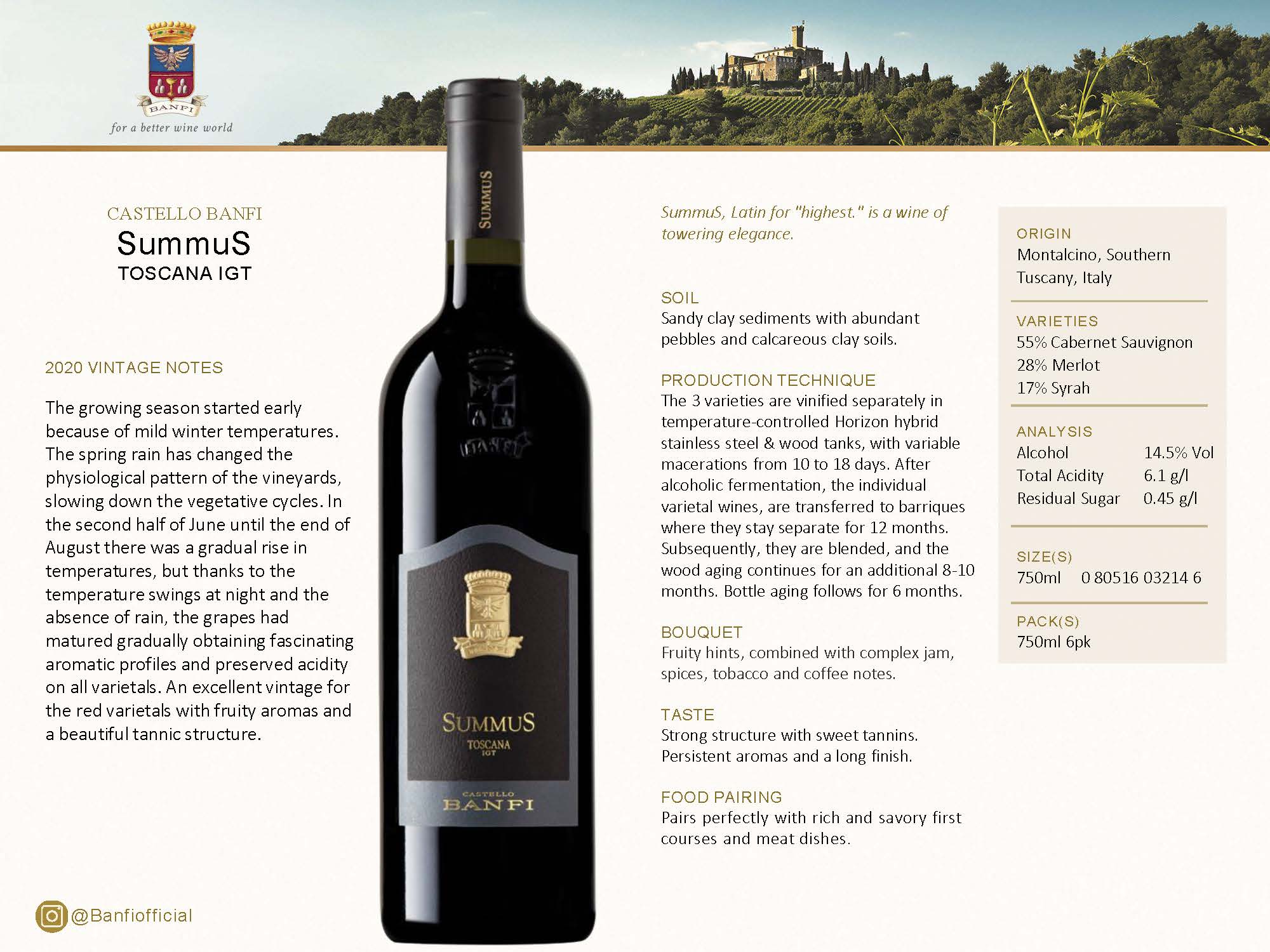 The fruit and structure of the Sangiovese and Cabernet Sauvignon are enhanced by the elegance and bouquet of the Syrah. The 3 varieties are vinified separately. After alcoholic fermentation, the individual wines are transferred to French oak barriques and aged separately for 12-14 months. They are then blended and aged in wood for 10-12 months. Bottle aging follows for 6 months.