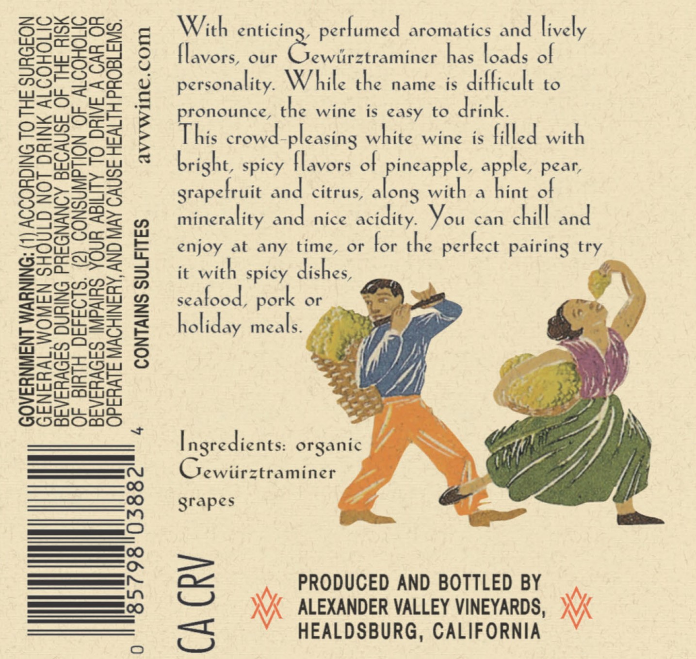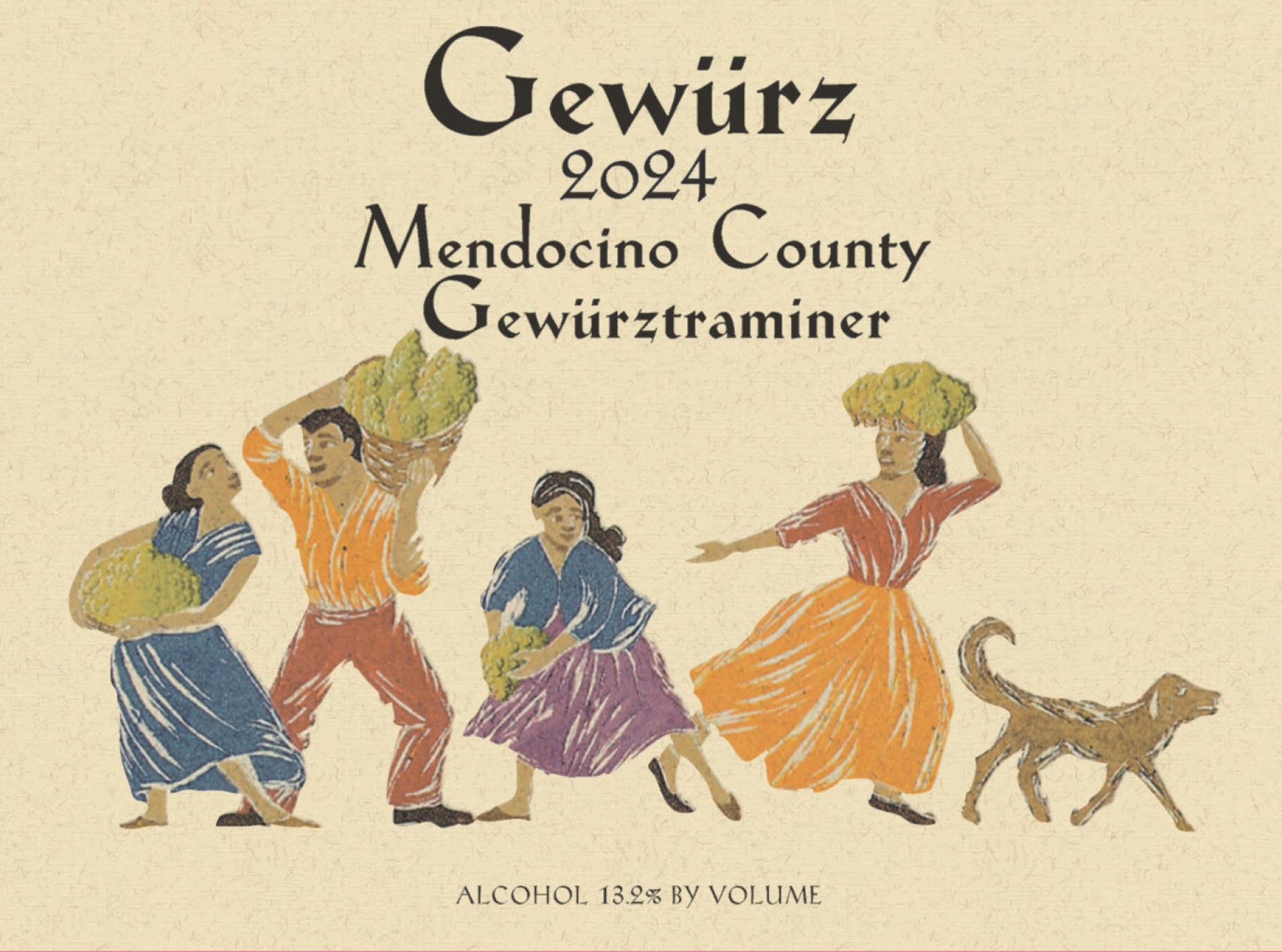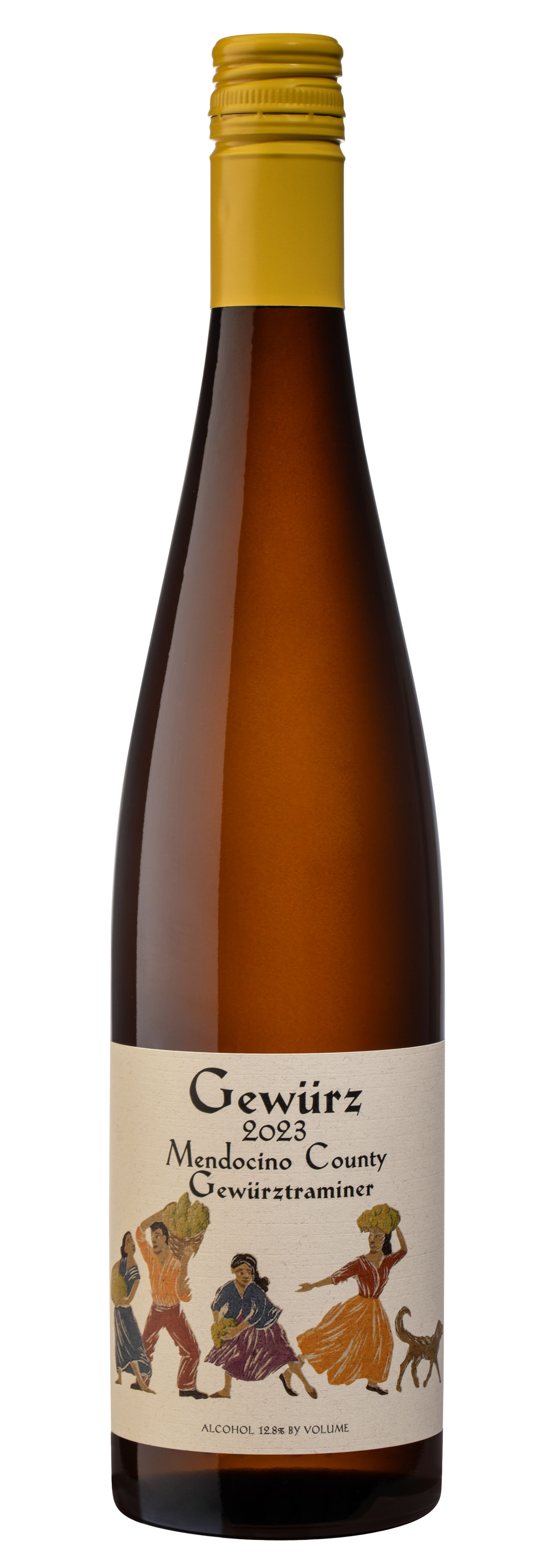 Our Gewürz is harvested exclusively from a single small CCOF (“California Certified Organic Farmers”) vineyard about one hour north of our home estate, located in Mendocino’s cool growing region of Potter Valley. This rugged location is the key to the great acidity and balance in our Gewürz.
