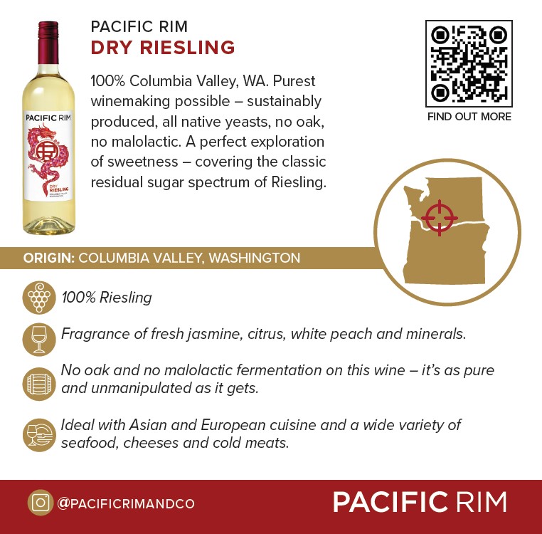 100% Columbia Valley, WA. Purest winemaking possible – sustainably produced, all native yeasts, no oak, no malolactic. A perfect exploration of sweetness – covering the classic residual sugar spectrum of Riesling.